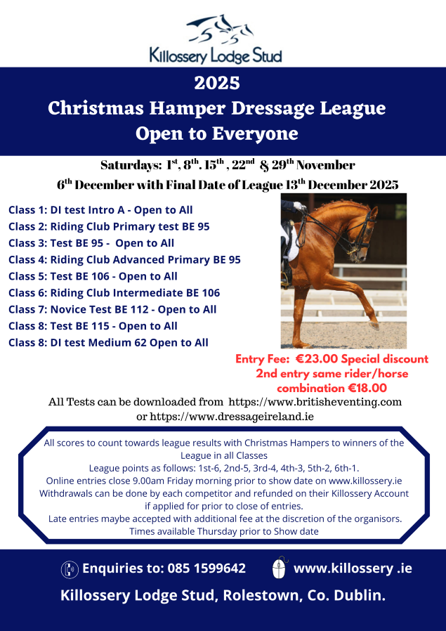 Times available Thursday before show on www.killossery.ie