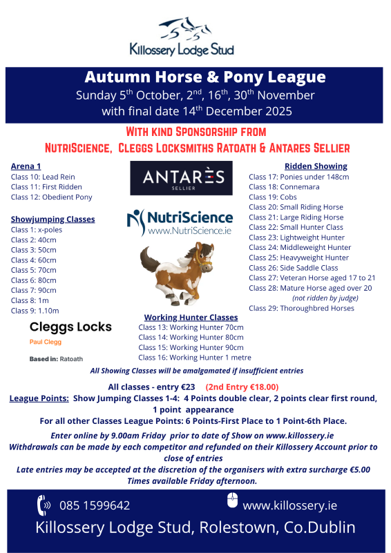 League points for the following classes as follows: 4 -Double Clear, 2 - Clear 1st Round, 1- Appearance