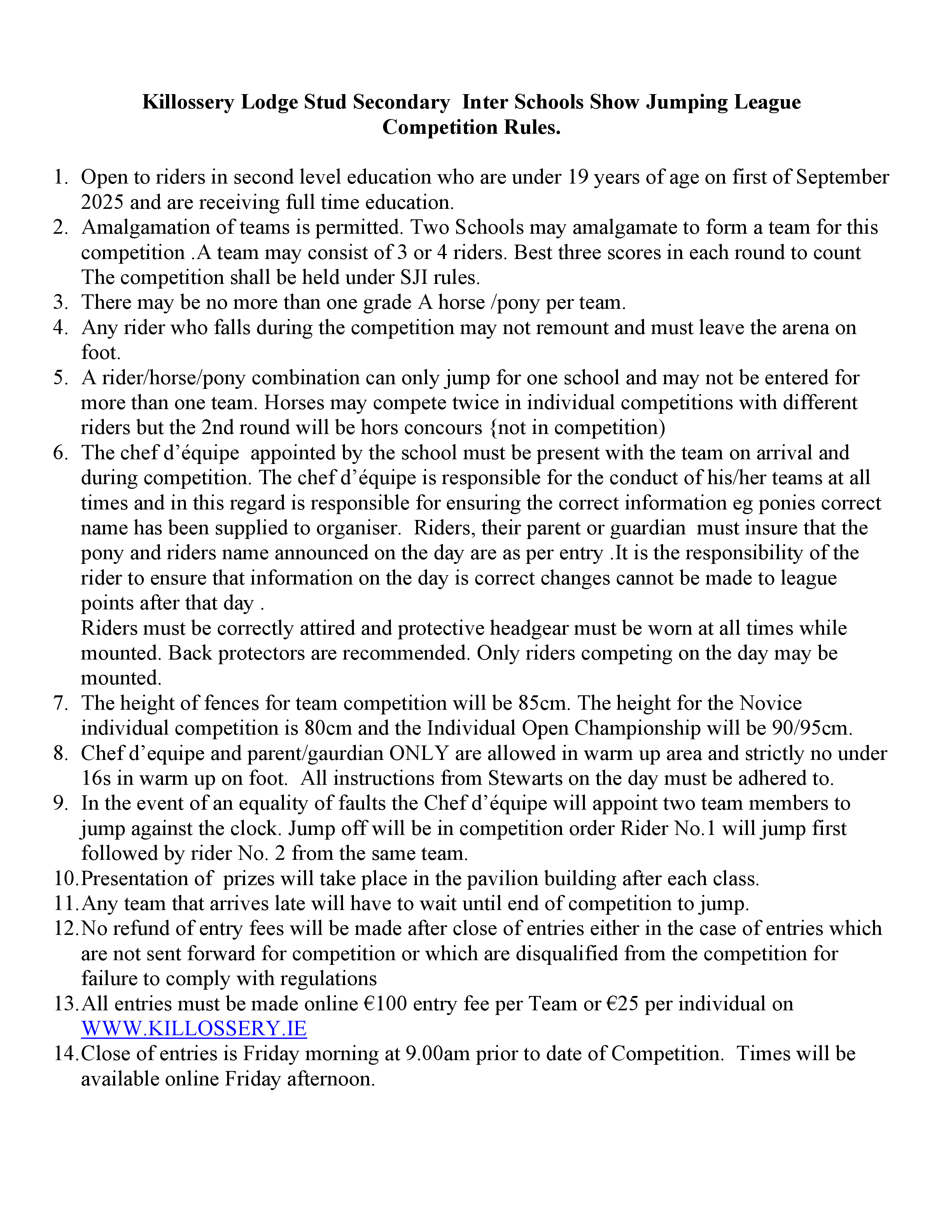 Championship individual 90/95cm: Open to everyone both primary and secondary.