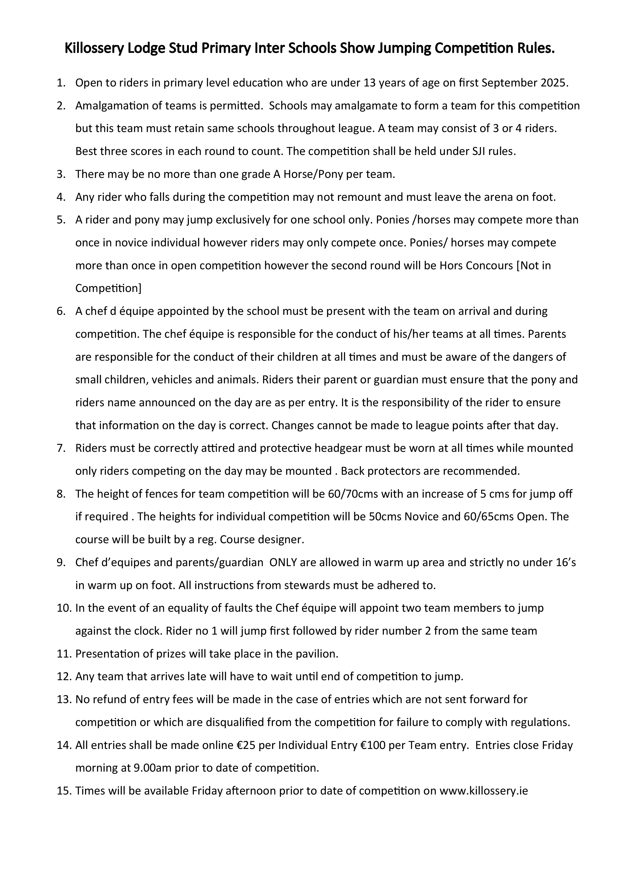 Course walk will start at 12:30 and show jumping will then start at 12:40.