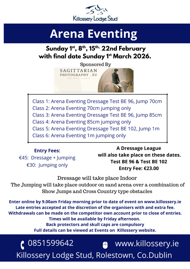 Enter online by 9.00am Friday prior to date of Show on www.killossery.ie  No late entries will be accepted after close of entries time and times have been posted.