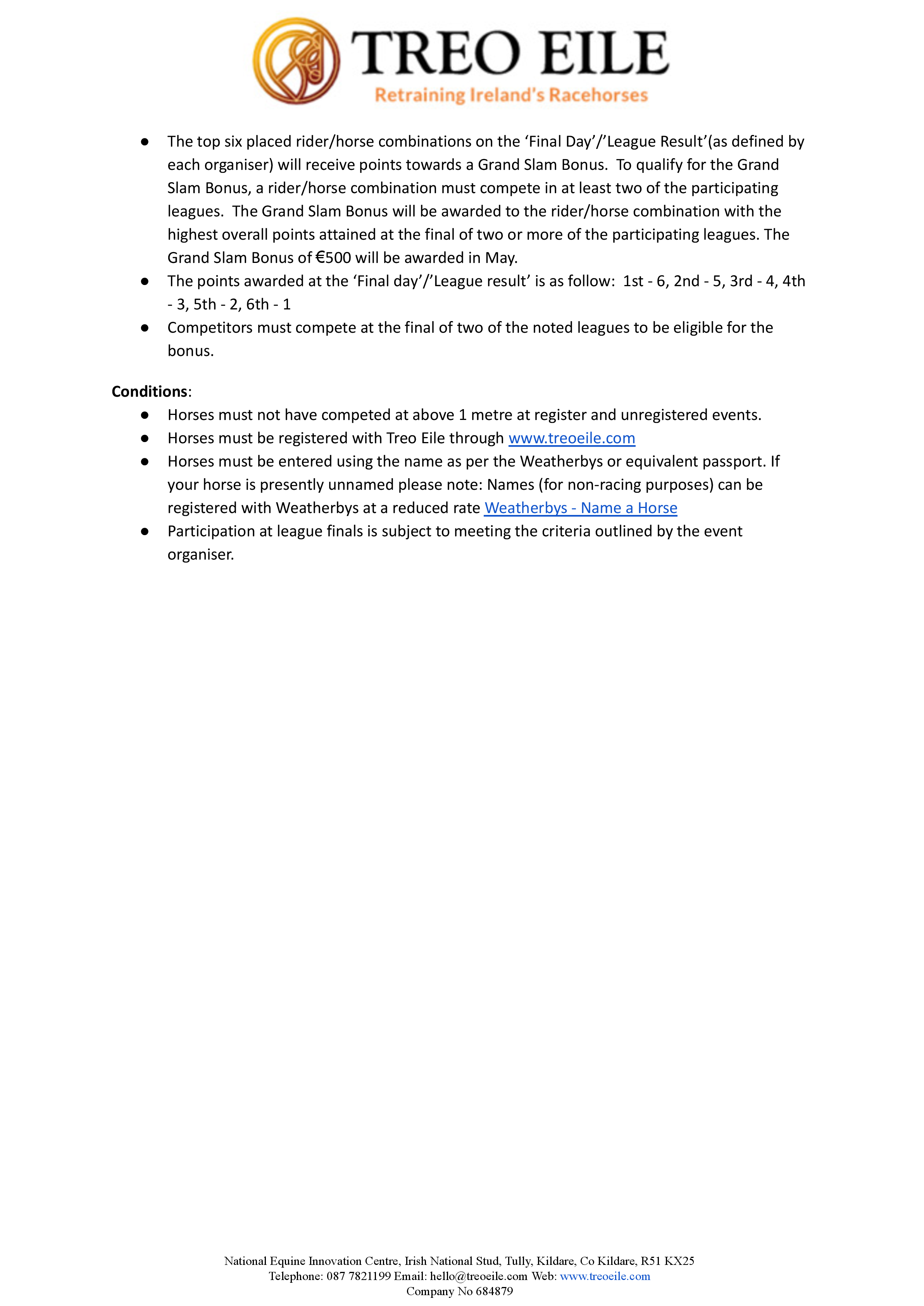 You must attend two legs in the same class plus the final on Sunday 1st March to be in with a chance of the prize money in the final
