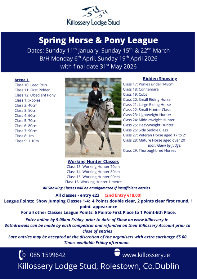 League points for the following classes as follows: 4 -Double Clear, 2 - Clear 1st Round, 1- Appearance